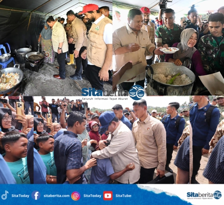 Sesaat setelah tiba, Presiden Prabowo bersama Gubernur Aceh langsung mengecek dapur umum bersama yang dimasak oleh Ibu-Ibu sekitar lokasi pengungsian.