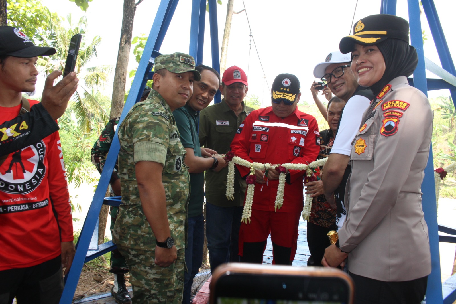 Peresmian ditandai dengan pemotongan pita,pembagian bingkisan dan peninjauan langsung jembatan oleh Letjen TNI (Purn) AM Putranto yang di damping oleh Dandim 0714/Salatiga Letkol Inf Guvta Alugoro Koedoes bersama para pejabat daerah. Warga tampak antusias mencoba melintasi jembatan yang menjadi harapan baru bagi kedua desa tersebut.