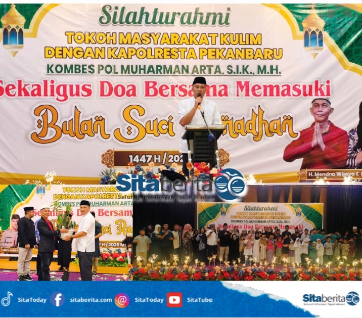 Pekanbaru, sitaberita.com – Kapolresta Pekanbaru, Muharman Arta, menghadiri kegiatan Silaturahmi Tokoh Masyarakat Kecamatan Kulim dan Doa Bersama menyambut Bulan Suci Ramadhan 1447 H di Gedung Balai Tri Wijaya, Kecamatan Kulim, Jumat malam (13/02/2026). Kegiatan ini diinisiasi oleh Kapolsek Kulim, Didi Antoni.